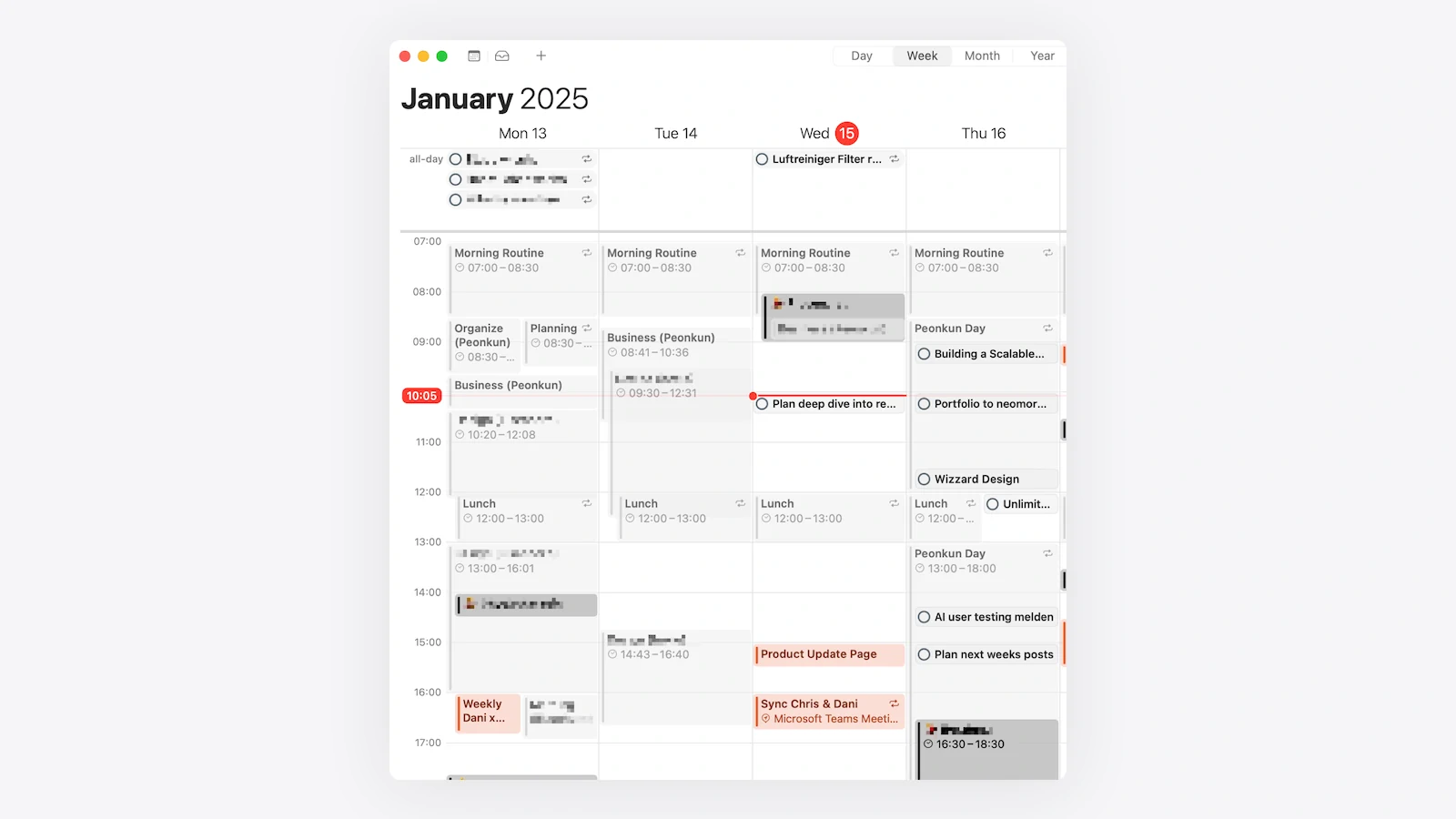 During my weekly review, I assign dates and times to tasks, syncing them with Apple Calendar. This ensures that my tasks are not only planned but also realistically distributed throughout my week. Seeing tasks alongside meetings and events helps me balance my workload and avoid overcommitting.